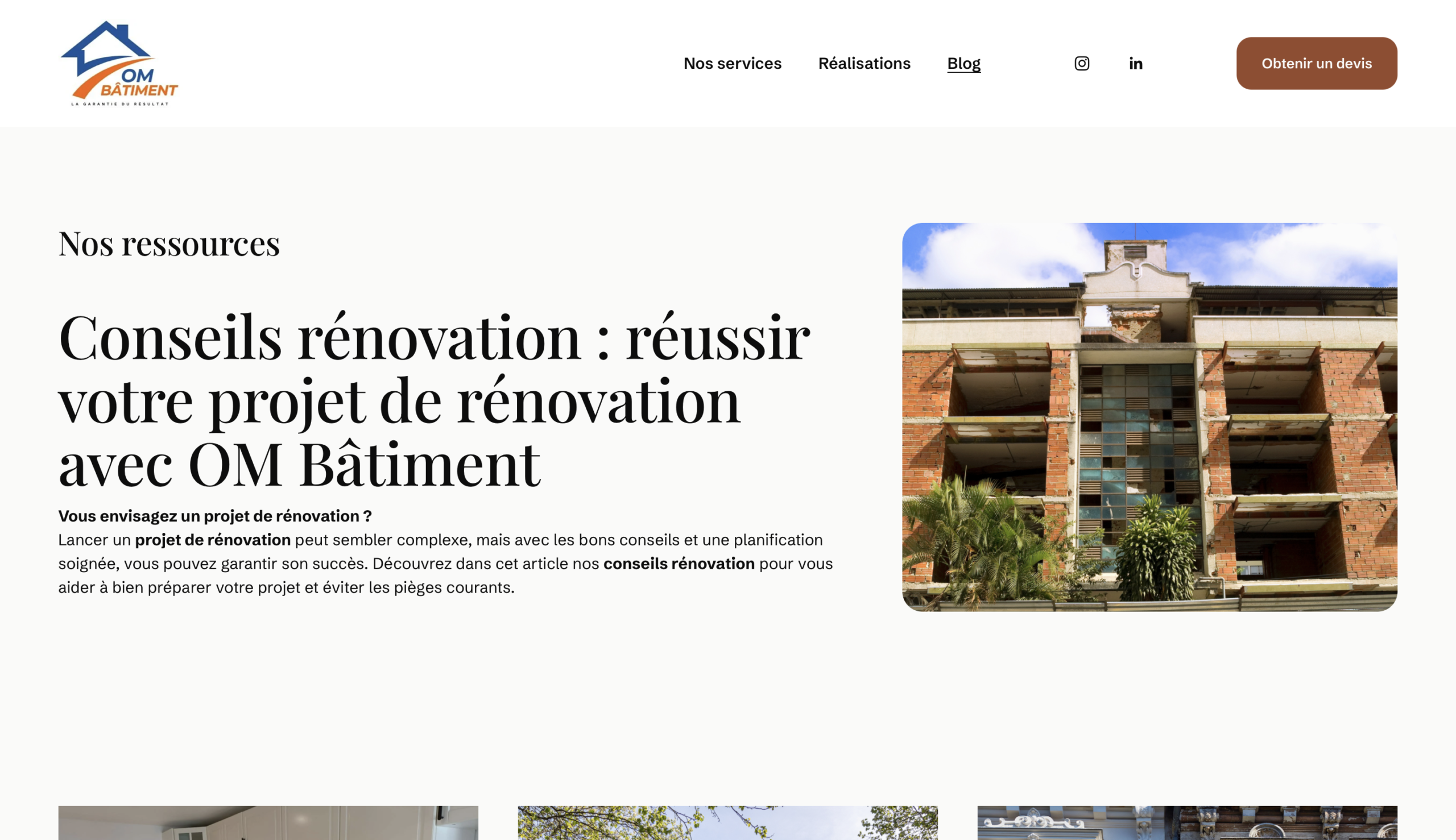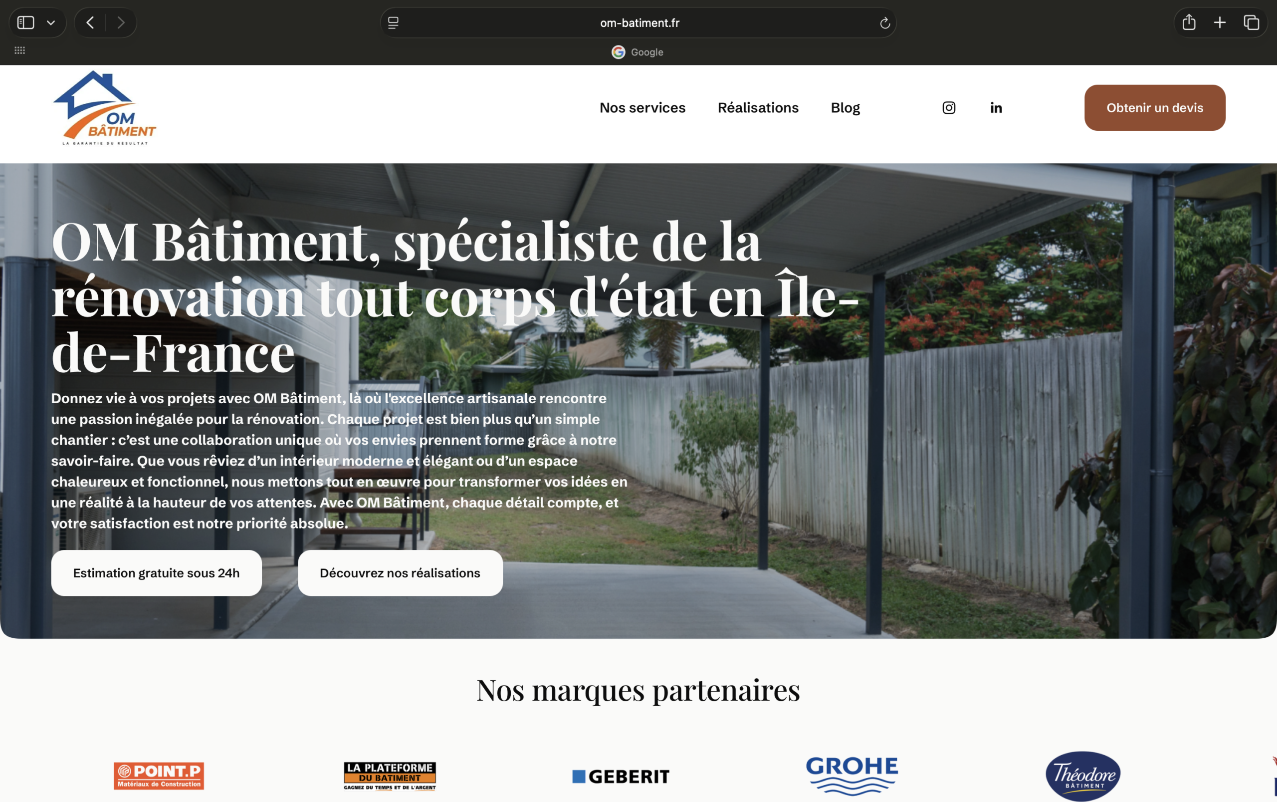 Résultats obtenus : le site vitrine a permis à l’entreprise de rénovation d’affirmer sa présence en ligne et de valoriser ses réalisations. Il facilite désormais la découverte des services par les clients potentiels et contribue à générer de nouvelles opportunités de contact.